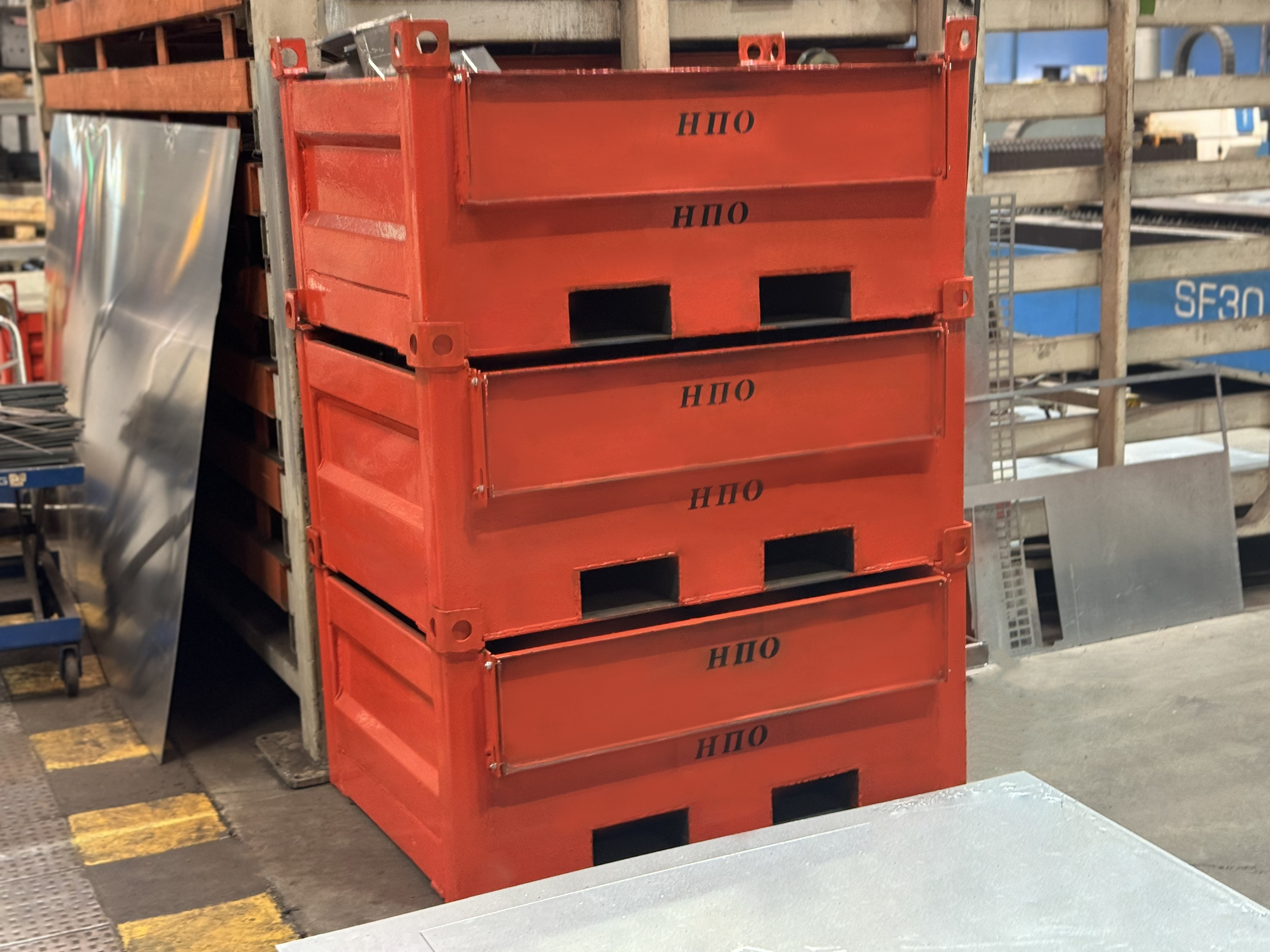 Стеллажи, поддоны, контейнера, тару.