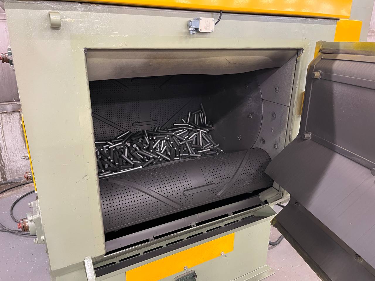 Иногда нагревают и саму деталь перед обработкой. Это помогает быстрее испарить остатки масел или влаги. Теплый металл лучше поддается очистке от вязких битумных покрытий. При низких температурах такие слои становятся твердыми и плохо скалываются. Подогрев дроби также используют в автоматических линиях для ускорения процесса сушки после влажной очистки.
